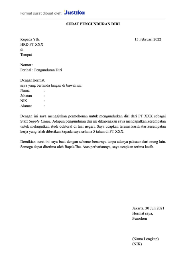 Contoh Surat Pengunduran Diri Kerja Yang Baik Dan Sopan