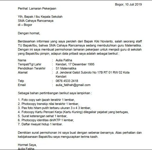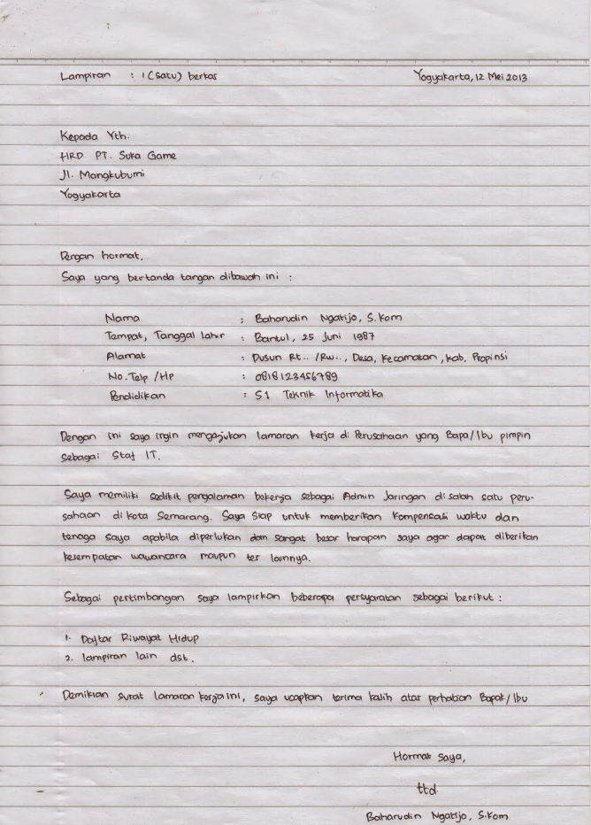 Pada anggota penutup, anda sanggup mengemukakan ucapan terima kasih. Di anggota akhir, lengkapi dengan nama dan tanda tangan pembuat surat sebagai pengesahan bahwa surat itu benar diajukan oleh nama bersangkutan.